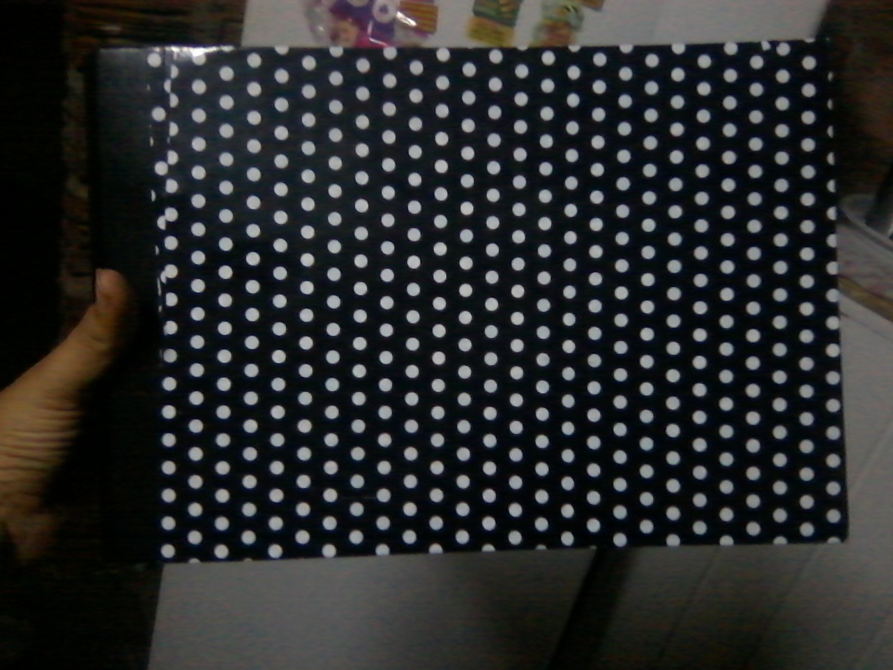 Eu comprei o fichario e ele veio sem nada, então o que eu fiz, eu comprei papel contacte preto de bolinhas e encapei, assim como na foto aqui: