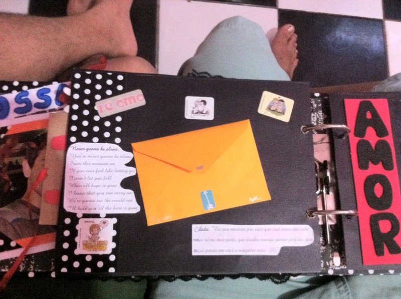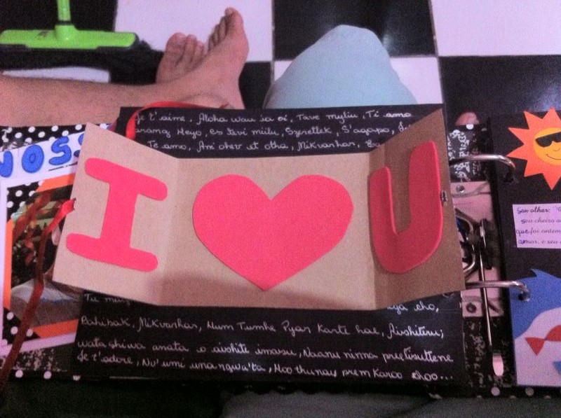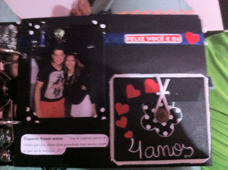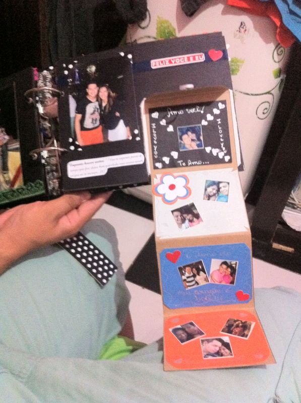 Ele é um ''livro'' que conta a história de vocês dois, vou dar como exemplo o Scrapbook que fiz pro meu namorado, eu fiz com varias fotos nossa, desde a primeira foto até a ultima antes de fazer o scrapbook. E garanto a vocês, ele amou. *---*